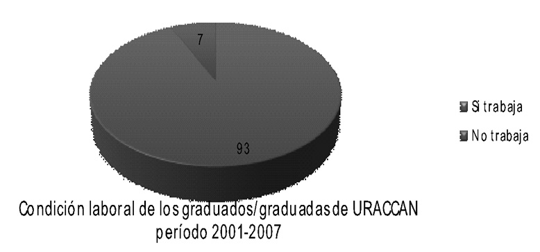 Gráfico No. 2. Condición laboral de los graduados/graduadas en la URACCAN, período 2001-2007