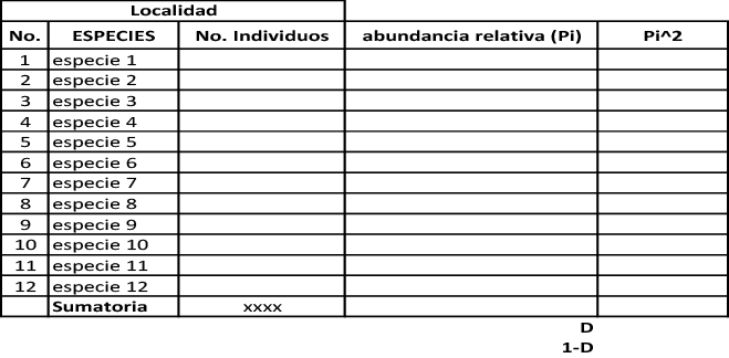 Tabla 1: Estructura para calcular el índice de Simpson.