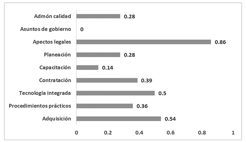 Figura 2: Valores de los subindicadores de las actividades de apoyo de la cadena de valor en una escala de 0 a1.