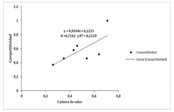 Figura 6: Diagrama de dispersión que muestra la relación entre cadena de valor y competitividad.