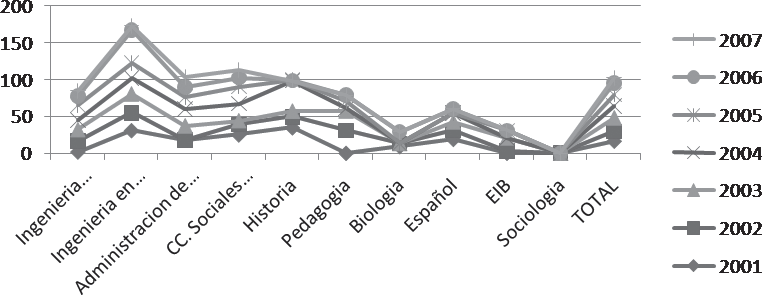 Para fines del estudio se utilizaron datos estadísticos de la oficina de registro estudiantil. Se analizaron cifras estadísticas de los años 2001 al 2007, en las diferentes carreras específicas de la Universidad en: Ingeniería Agroforestal, Zootecnia; Licenciaturas en Ciencias Sociales con mención en Desarrollo Local, Administración de Empresas con mención en Banca y Finanzas, Ciencias de la Educación con menciones en Historia, Biología, Español y Pedagogía.