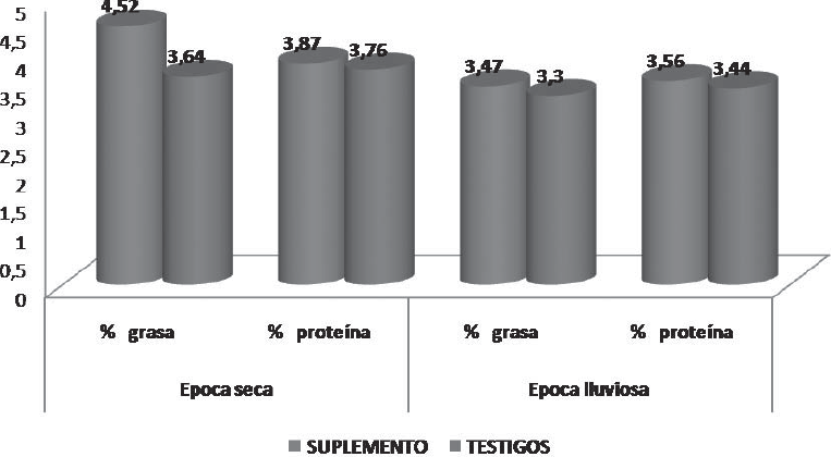 La suplementación brindada en la época seca presentó mejores resultados en función del aumento de la producción y calidad de la leche, esto porque la ración ofrecida fue aprovechada en su totalidad.