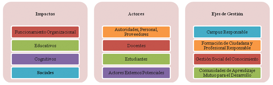 Las instituciones de Educación Superior enmarcadas en la responsabilidad social deben jugar un papel en los impactos que generan en su entorno humano, social y natural, en la promoción del desarrollo humano sostenible de un país. La responsabilidad social de las instituciones de Educación Superior se puede expresar en el siguiente esquema:
