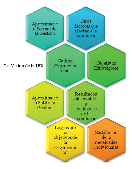 Si bien es, toda institución de Educación Superior, es una organización que constituye un constructo social y desde esa construcción se despliega la acción individual y colectiva de las personas que la conforman. Ese constructo no está determinado ni predeterminado, es el resultado de la acción de las personas, dentro de una lógica que trasciende los caminos de la racionalidad o la espontaneidad de los procesos interactivos. Por lo que construir IES con un proceso de gestión es construir un escenario sobre el futuro siendo esta una obra creativa a la que, implícita o explícitamente, contribuyen todos aquellos que ha de tomar decisiones a largo plazo. Por lo que en el proceso de gestión la visión de las instituciones de Educación Superior tiene que ver a lo lejos, la imagen que se tiene del futuro, tienen que sorprender al futuro antes de que el futuro las sorprenda.