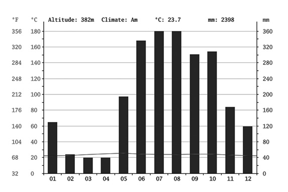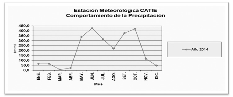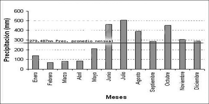 Figura no. 5. Comportamiento de las precipitaciones en el laboratorio natural Bismarck Lee. Según CLIMATE- DATA-ORG (2015).