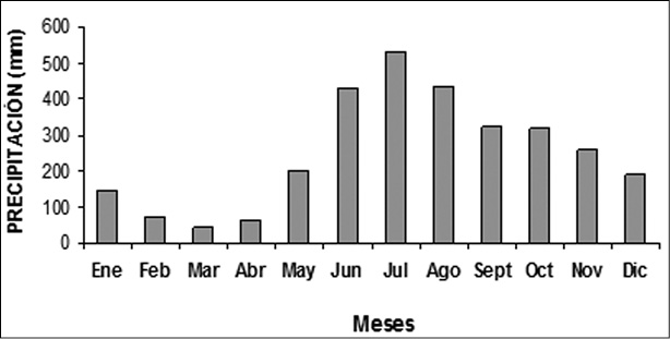 Figura no. 4. Comportamiento de las precipitaciones en el laboratorio natural Jerusalén (INETER, 2009)