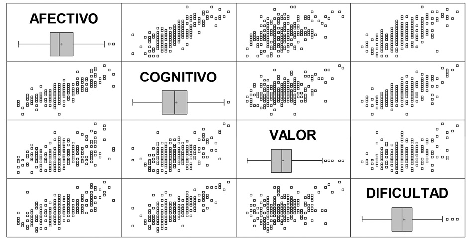 También, se destaca lo afectivo en relación con la dificultad en el aprendizaje de la estadística con un coeficiente de correlación de 0,62. Así como, lo cognitivo se relación con la dificultad en el aprendizaje de la estadística con una correlación de 0,69. Estas relaciones configuran que lo afectivo y cognitivo tratan de contribuir al grado de dificultad que representa aprender estadística en los estudiantes para profesor que atenderá a poblaciones en contextos multiculturales. Algo importante a mencionar, es el valor que el estudiante le otorga al aprendizaje de la estadística, reflejándose en la correlación valor-cognitivo con 0,50. En definitiva, las correlaciones entre las diversas componentes son todas altamente significativas y de intensidad moderada o alta, coincidiendo con los estudios de Estrada (2002), que dicen que este tipo de relaciones constituyen aspectos diferenciados de las actitudes, y que cada uno de estos aspectos puede influir en los otros.