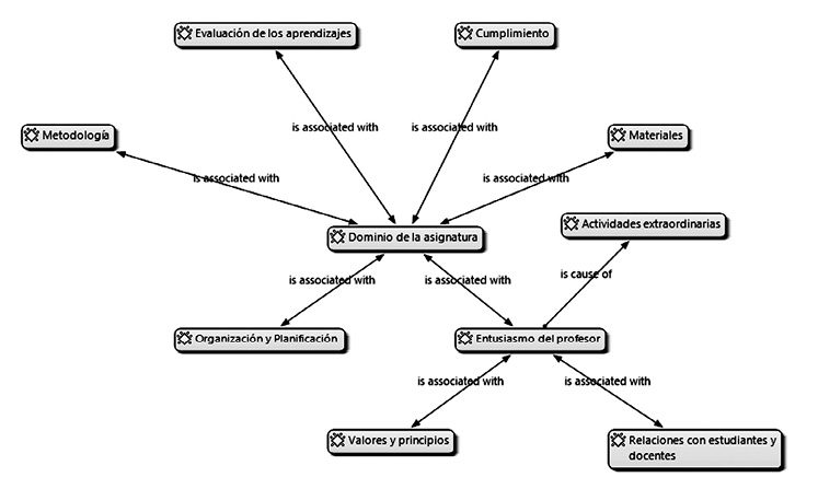 Figura 3. Red relacional de las dimensiones de evaluación docente.