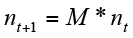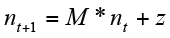 Suponiendo una población de clases diamétricas (z₁, z₂... zl) en el año , en donde zl es la clase diamétrica de los árboles de cosecha, la proyección de la población en el año