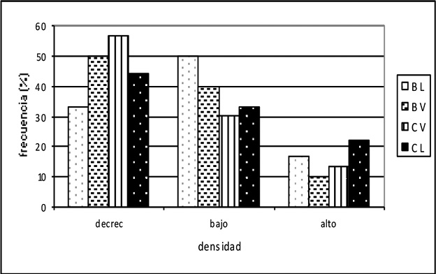 CV: cacao en valle; CL: cacao en ladera; BV: banano valle; BL: banano ladera