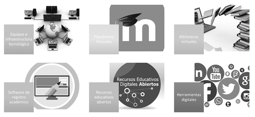 Las tecnologías que se destacan para la enseñanza y aprendizaje de los conocimientos, saberes y prácticas matemáticas son: la implementación de equipos e infraestructura tecnológica; plataformas virtual Moodle; bibliotecas virtuales; software para el registro académico; recursos educativos abiertos; y herramientas digitales. Entre las herramientas digitales más destacadas son redes sociales (Facebook; G+; Twitter; LinkedIn; WhatsApp); Google Site; GoAnimate; Prezi; Slideshare; Educaplay; YouTube; y PowToon. Cabe mencionar que las TIC han fortalecido las capacidades de interacción y comunicación entre el profesorado y el estudiantado tomando en cuenta que la Educación Superior es un bien social y que debe estar acorde con los cambios que la sociedad vive experimentando (Flores & Rojas, 2013).