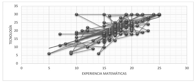 También, se puede visualizar en los estudios de Flores (2017) sobre las actitudes del estudiantado universitario ante la incorporación de tecnologías en la enseñanza de las matemáticas, donde se encontró que las experiencias matemáticas con tecnologías se asociación con un coeficiente de correlación de Pearson de 0,67, entendiéndose como el gusto para la integración de las TIC en la enseñanza y aprendizaje de las matemáticas.