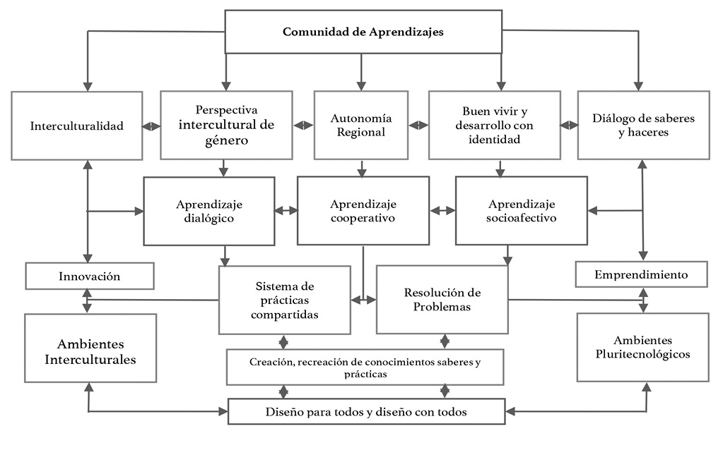 La enseñanza de las matemáticas en contextos multiculturales está orientada desde la pedagogía intercultural, entendiéndose como el desarrollo de un diálogo intercultural como una estrategia para promover espacio de innovación de nuevos conocimientos, ya que confronta elementos de diferentes horizontes y perspectivas culturales, abriendo la posibilidad de impulsar un proceso de complementación y enriquecimiento entre la ciencia moderna y otros saberes. Así, la formación del estudiantado en contextos multiculturales se configura como un proceso de negociabilidad de lo matemático en una comunidad de aprendizaje (León et al., 2013) en la que los aspectos siguientes se manifiestan y se tematizan: interculturalidad, perspectiva intercultural de género; autonomía regional; buen vivir y desarrollo con identidad; y diálogo de saberes y haceres (Flores, 2015).