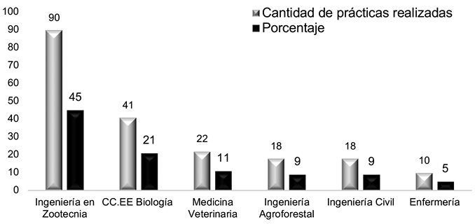 Figura No. 13. Participación de estudiantes y docentes en las prácticas de laboratorio.