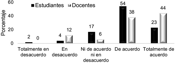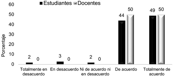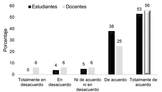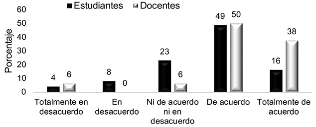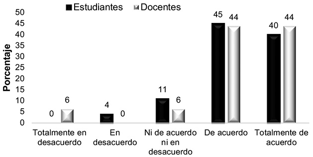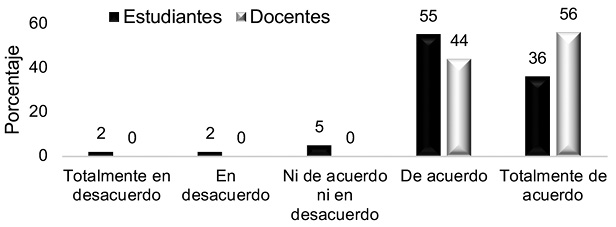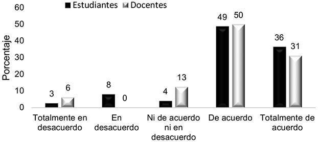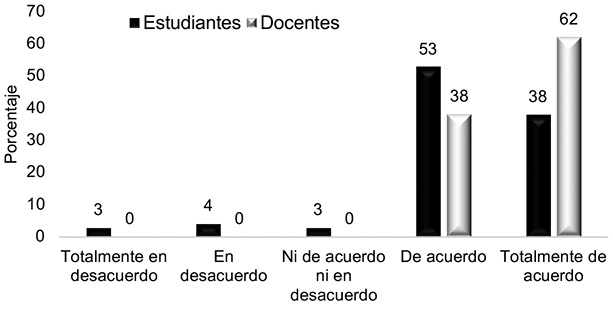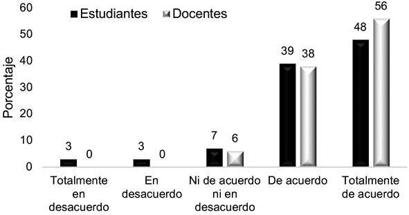 La variable sostenibilidad fue considerada como muy buena por estudiantes y docentes (82 y 84 %, respectivamente), este resultado denota que las prácticas desarrolladas tienen una aplicabilidad y utilidad significativa tanto en la vida académica como en la vida cotidiana del estudiantado.