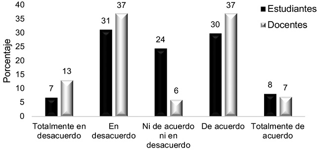 A partir de la figura No. 16 se aprecia como aspecto importante a destacar la percepción de estudiantes y docentes sobre la utilidad de los aprendizajes para lograr en un efectivo desempeño de su carrera, en este particular, estudiantes y docentes coinciden en una apreciación positiva sobre que desde estos espacios académicos se está preparando al estudiantado para un mejor desempeño profesional.