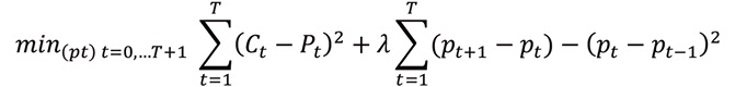Donde λ, es el parámetro de suavización, que sanciona la suma de las segundas diferencias del componente permanente. Mientras más grande sea lambda, obtendremos una tendencia más suave y cuando lambda sea lo suficientemente pequeño tendremos una tendencia más volátil.