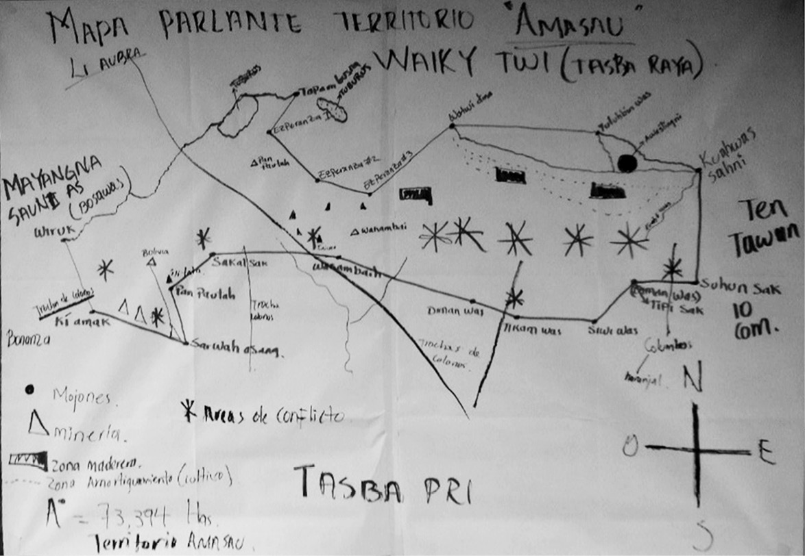 El territorio Amasau, como cualquier otro territorio enfrenta conflictos internos con relación a la gestión de los medios de vida, entre otros. En este sentido, el territorio cuenta con un “Diagnóstico de tenencia y uso de la tierra de la comunidad de Awastingni” y el manual del territorio, ambos validados en 2003, que fue elaborado con el fin de tener un método escrito que sirva de generación a generación, para la resolución de conflictos interno dentro de la comunidad: