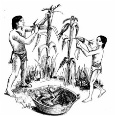 limí Sirpi ayudaba a su Mamá a recoger frutas silvestres; trabajaba en la milpa y jugaba con los otros muchachos.