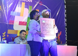 Jamil Zapata, secretario político departamental de la Costa Caribe Norte, encabezó la entrega de un sin número de reconocimientos al aporte de URACCAN en la profesionalización de los pueblos.
